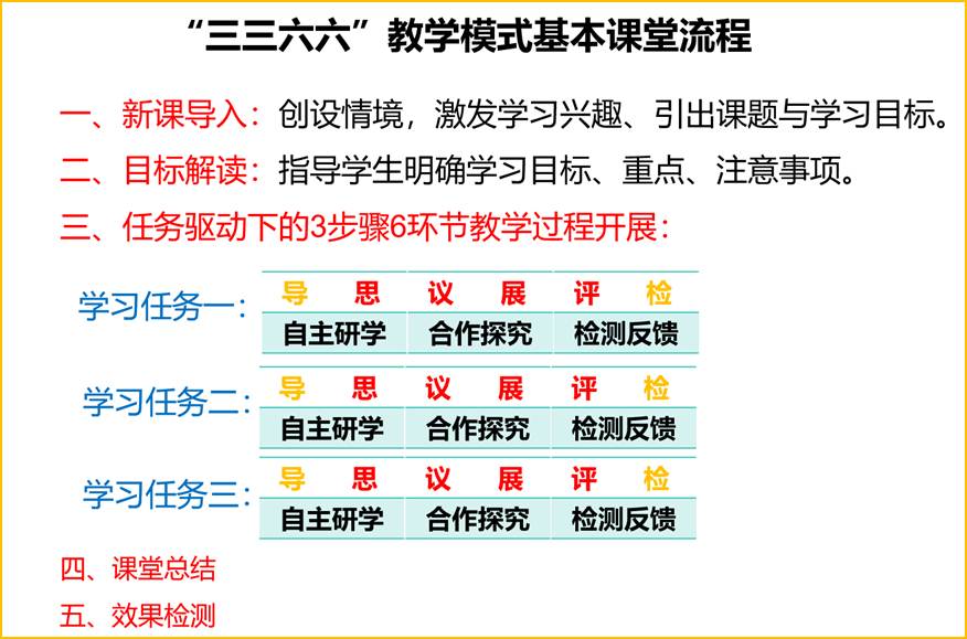 第1个6即教学6环,导、思、议、展、评、检