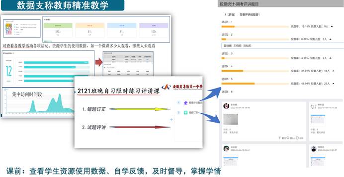 3教师依据本节课学生学情分层推送效果检测,学生答题数据详情将及时反馈到教师端,使教师能够精准了解学生知识掌握情况及存在问题。按照“三讲与三不讲”原则(“三讲”即:讲讲重点,讲难点,讲易错、易混、易漏点;“三不讲”即: 学生已经会的不讲,学生自己能学会的不讲,老师讲了学生也不会的不讲)来处理这些问题。对于学生错误率高的试题,教师会在课堂上采取集中讲解方式,或邀请答对学生对全班学生进行讲解;对于错误率低试题,答错学生可查看试题附带解析,或对相关知识重新学习,教师不再进行集中讲解。