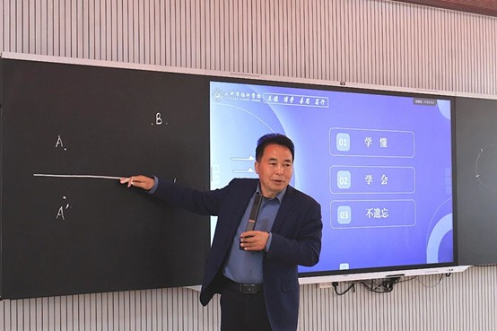在专题研讨座谈会上,杨河学校校长李延寿、副校长陈守俊分别围绕学校教学改革工作,详细介绍了“三环六步实效教学模式”的研发理念、实践路径与阶段性成效,分享了学校在优化课堂结构、提升教学效率、培育学生自主学习能力方面的实践经验。